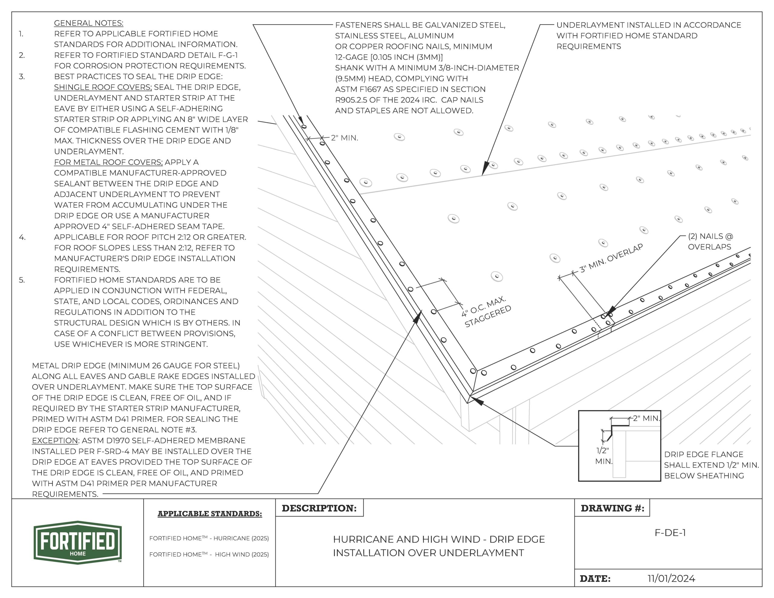 F-DE-3 High Wind – Drip Edge Installation Over Underlayment |