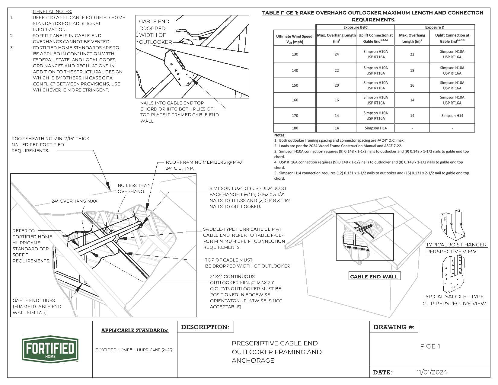 F-GE-1 Prescriptive Gable End Outlooker Framing and Anchorage |