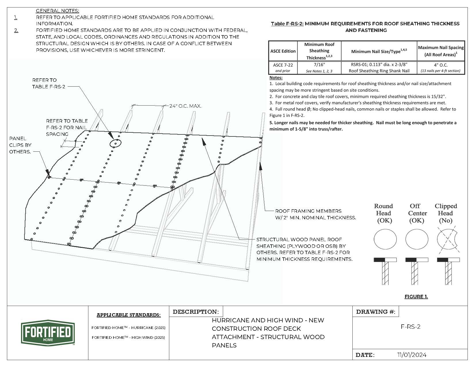 F-RS-2 Hurricane – New Construction Roof Deck Attachment – Structural Wood Panels |