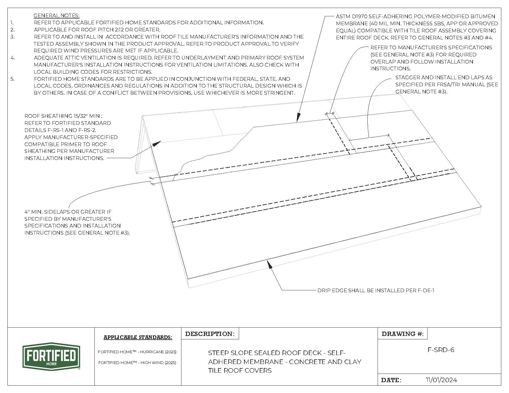 F-SRD-6 Steep Slope Sealed Rood Deck – Self-Adhered Membrane – Concrete and Clay Tile Roof Covers |