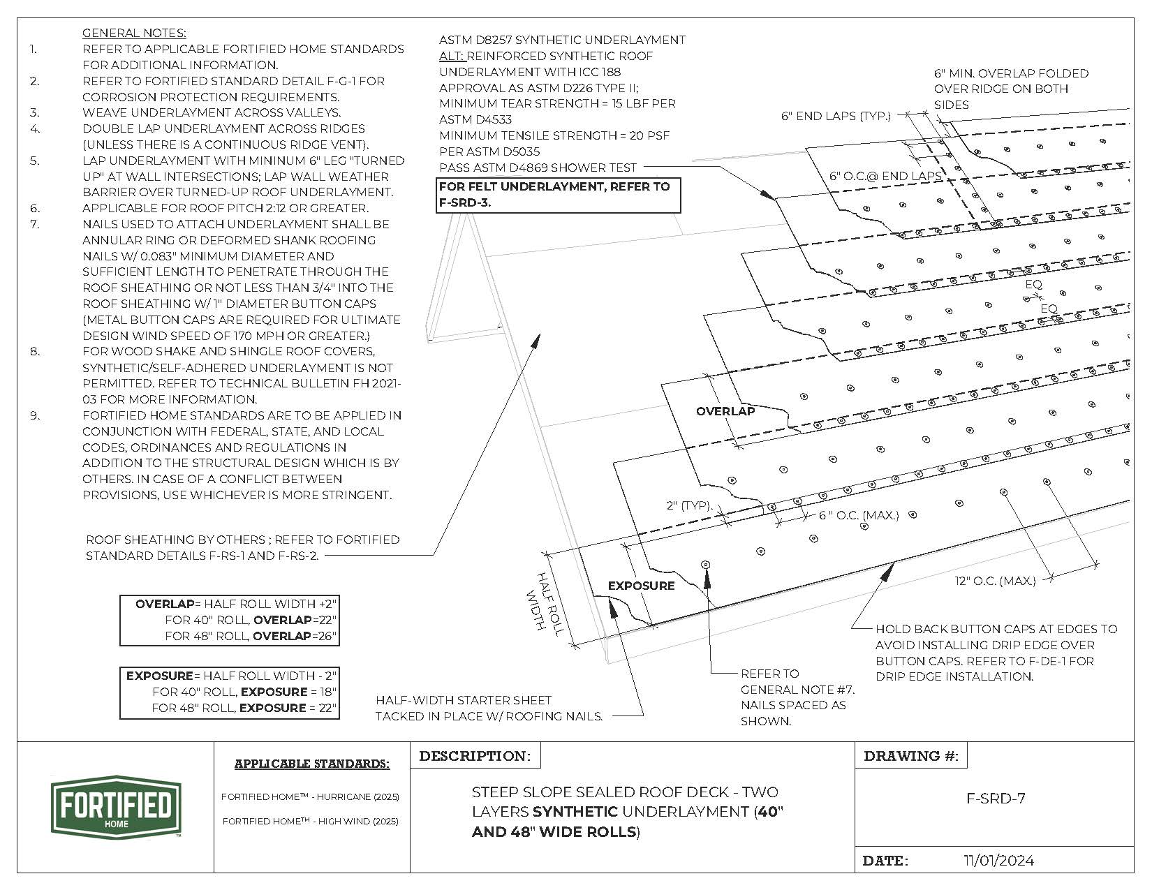 F-SRD-7 Steep Slope Sealed Rood Deck – Two Layers Synthetic Underlayment (40″ and 48″ Wide Rolls) |