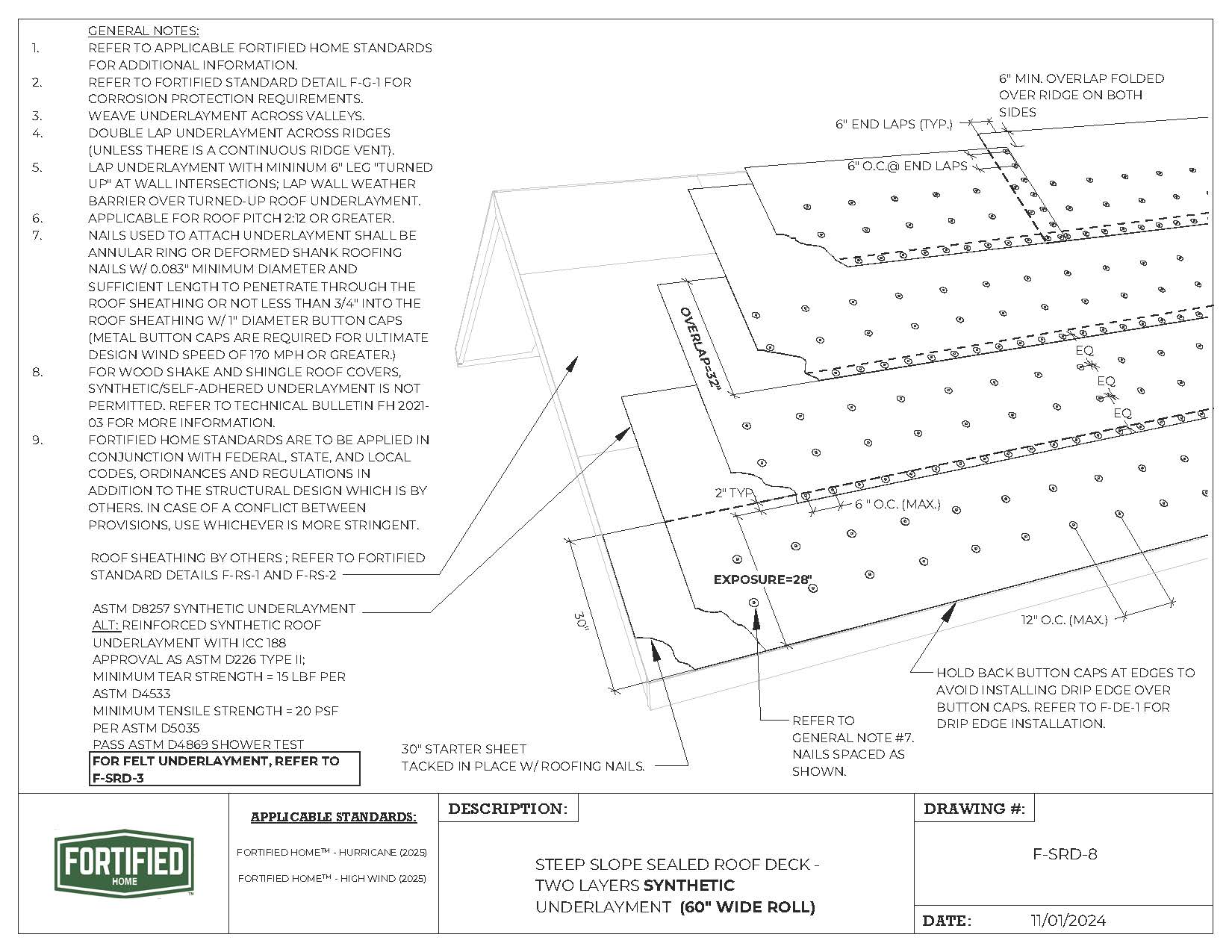 F-SRD-8 Steep Slope Sealed Roof Deck – Two Layers Synthetic Underlayment (60″ Wide Roll) |